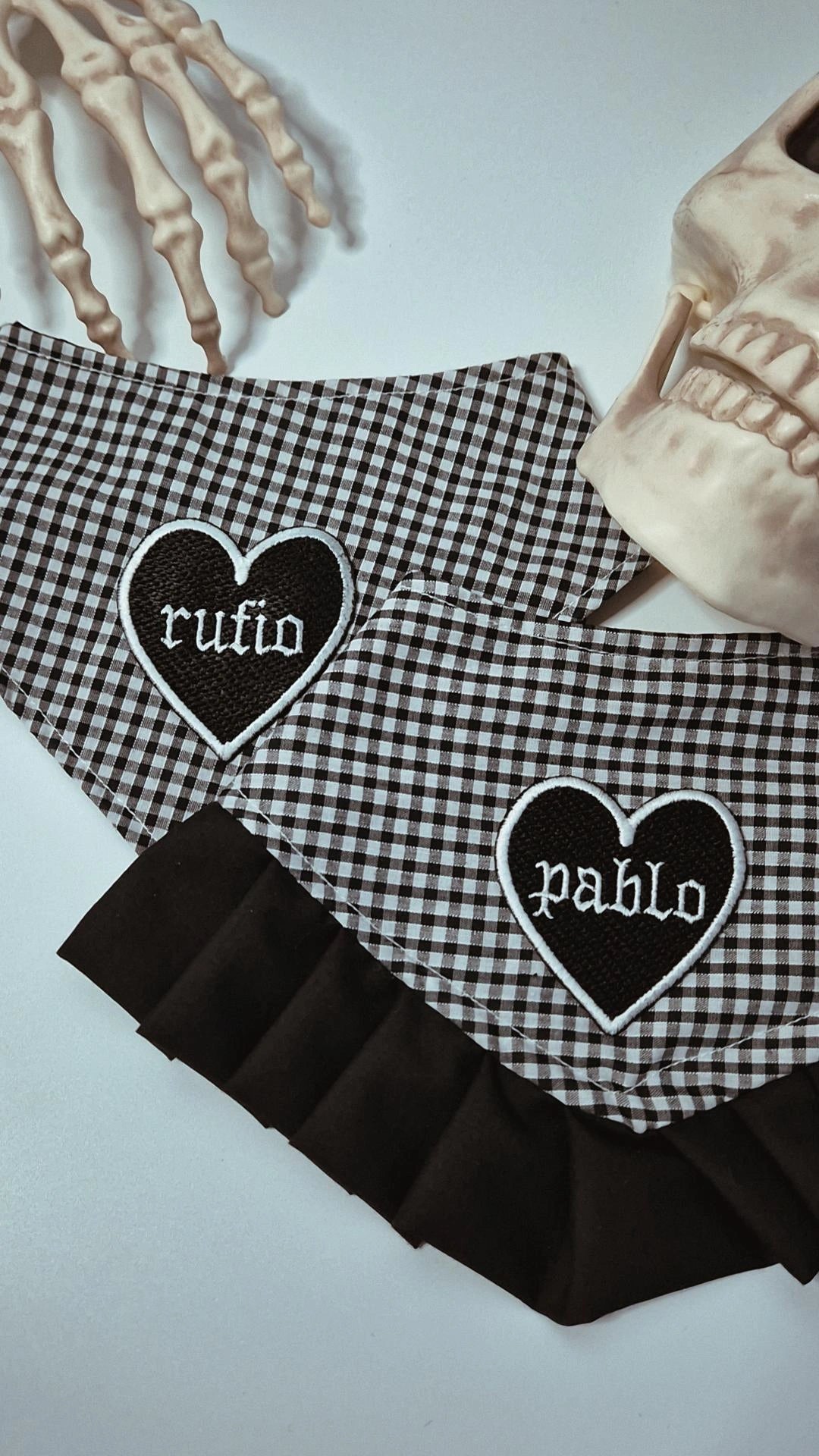 Brown gingham bandana with brown and beige personalised heart